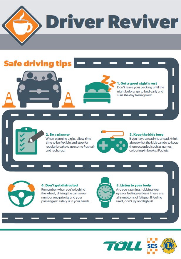 Listen to your body: Are you yawning, rubbing your eyes or feeling restless? These are all symptoms of fatigue. If you're feeling tired, don’t try and fight it - pull over for a power nap.